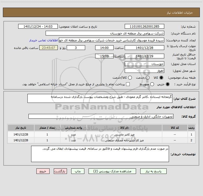 نام دستگاه خریدار:شرکت سهامی برق منطقه ای خوزستان