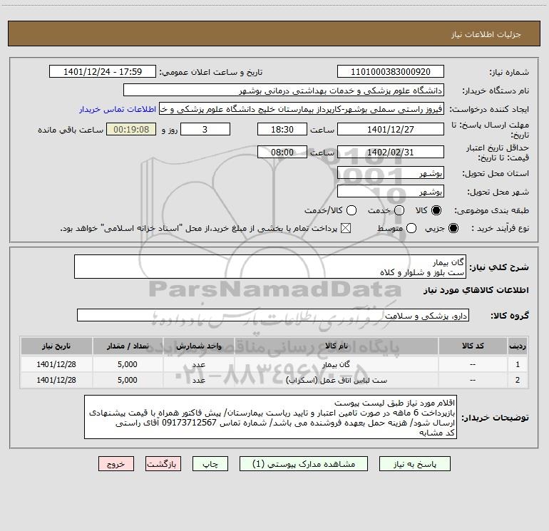 | 1 | -- | گان بیمار | عدد | 5,000 | 1401/12/28 |