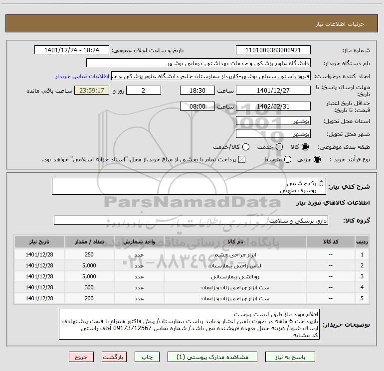 نام دستگاه خریدار:دانشگاه علوم پزشکی و خدمات بهداشتی درمانی بوشهر