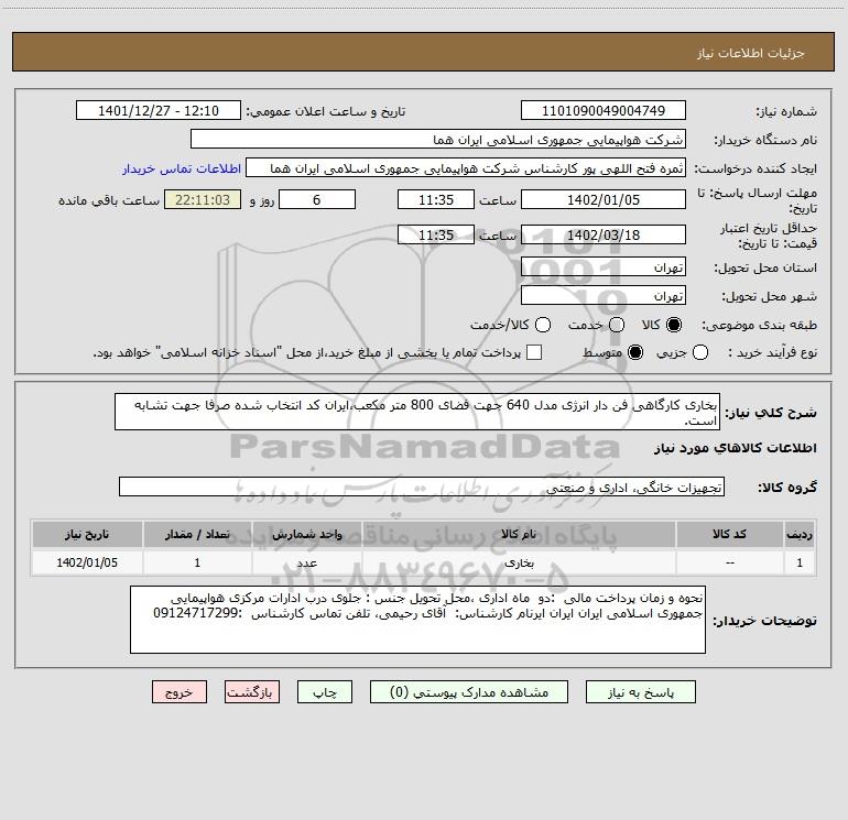 نام دستگاه خریدار:شرکت هواپیمایی جمهوری اسلامی ایران هما