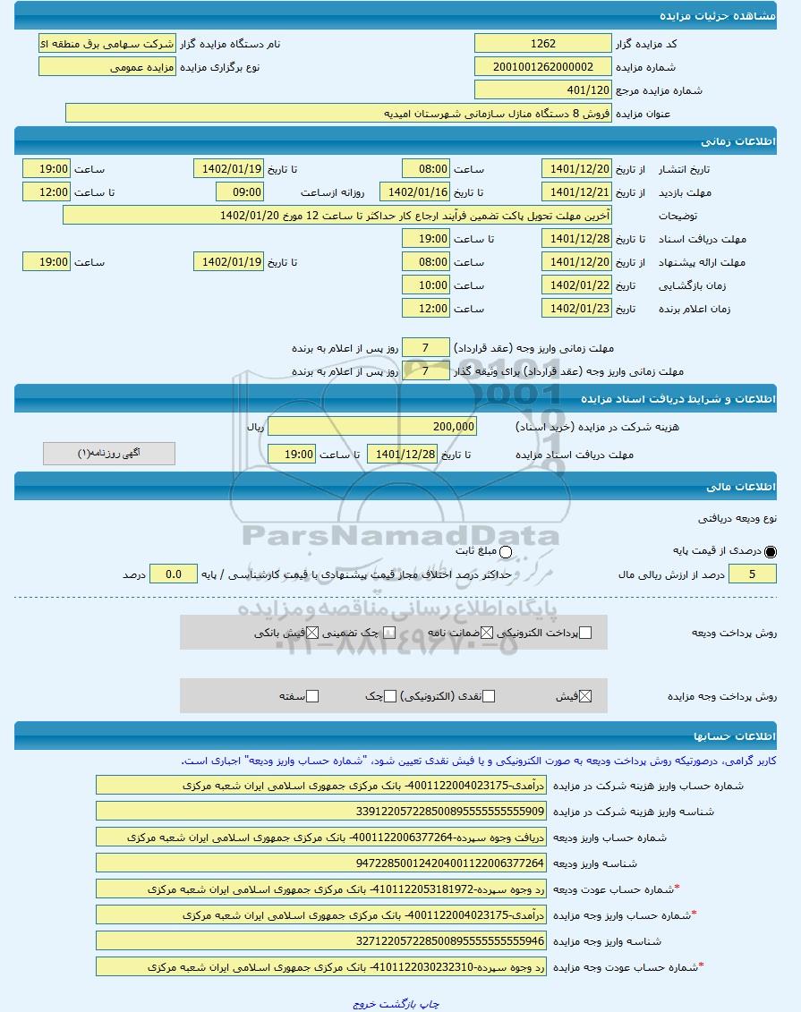 | شناسه واریز هزینه شرکت در مزایده | 339122057228500895555555555909 |