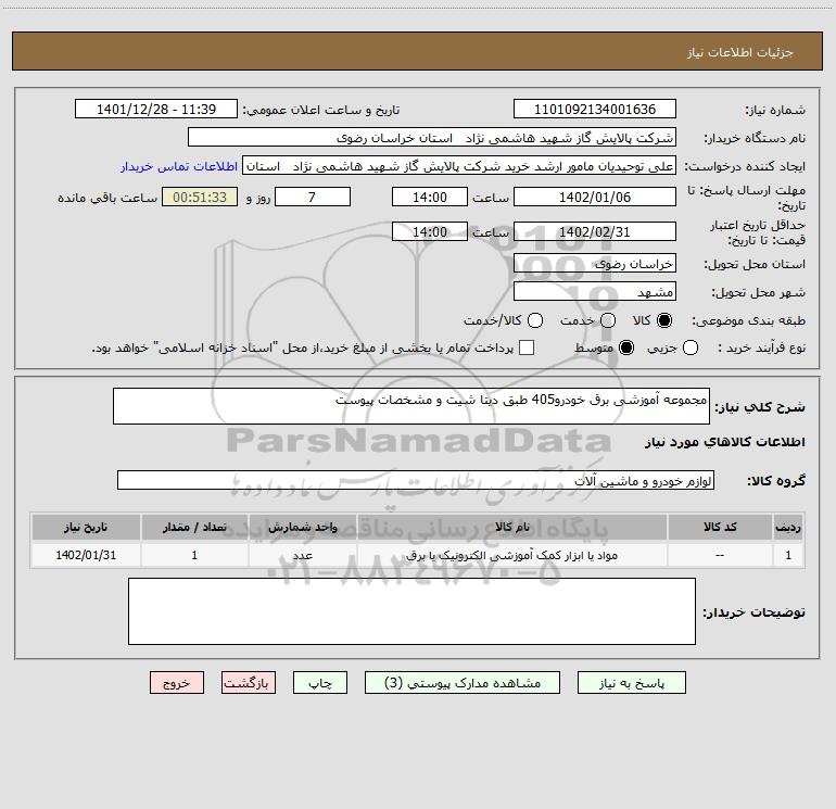 نام دستگاه خریدار:شرکت پالایش گاز شهید هاشمی نژاد استان خراسان رضوی