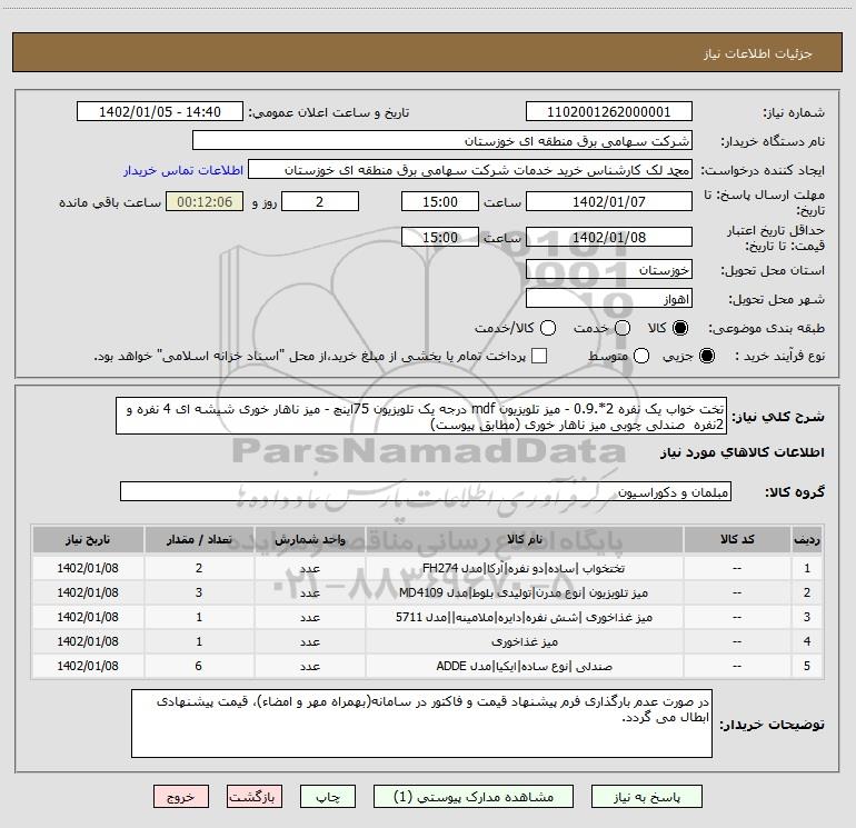 نام دستگاه خریدار:شرکت سهامی برق منطقه ای خوزستان