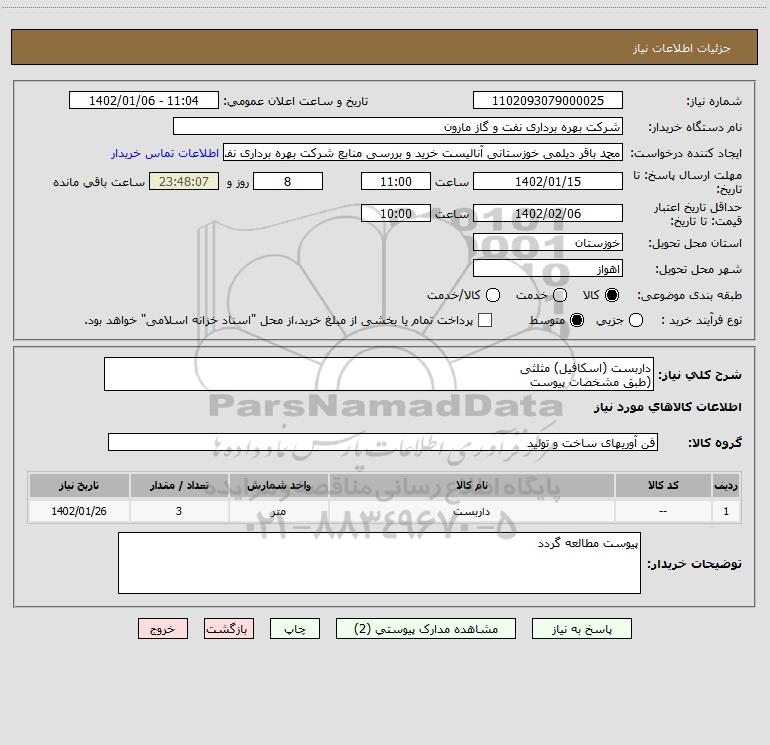 نام دستگاه خریدار:شرکت بهره برداری نفت و گاز مارون