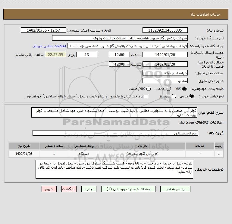 نام دستگاه خریدار:شرکت پالایش گاز شهید هاشمی نژاد استان خراسان رضوی
