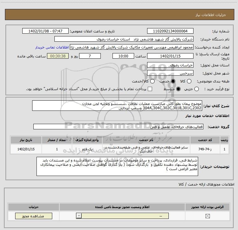 نام دستگاه خریدار:شرکت پالایش گاز شهید هاشمی نژاد استان خراسان رضوی