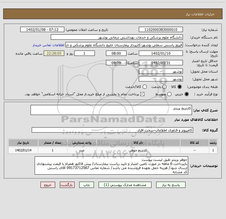 | 1 | -- | کارتریج جوهر | عدد | 1 | 1402/01/14 |