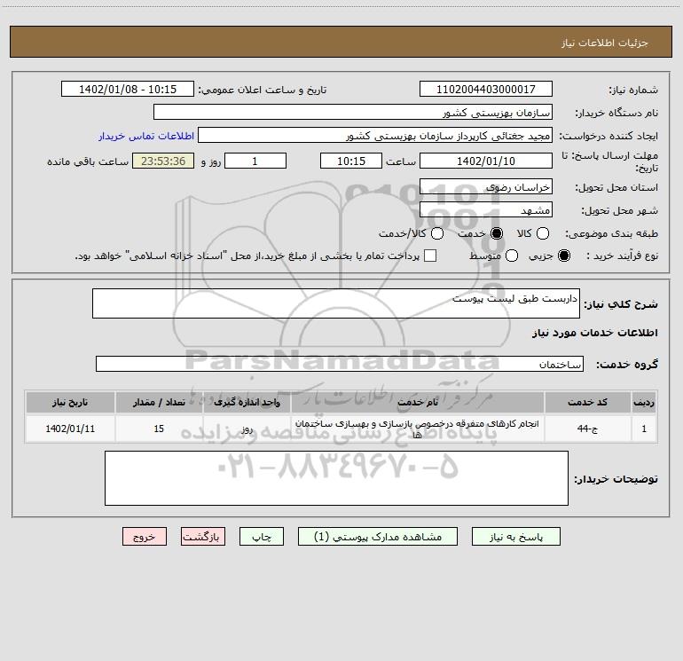 شرح کلی نیاز: داربست طبق لیست پیوست