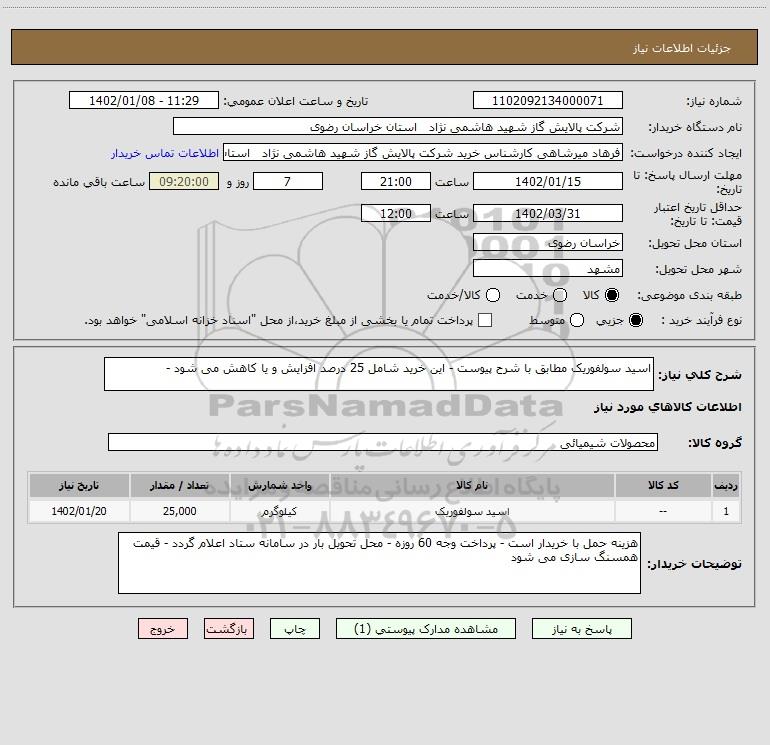 نام دستگاه خریدار:شرکت پالایش گاز شهید هاشمی نژاد استان خراسان رضوی