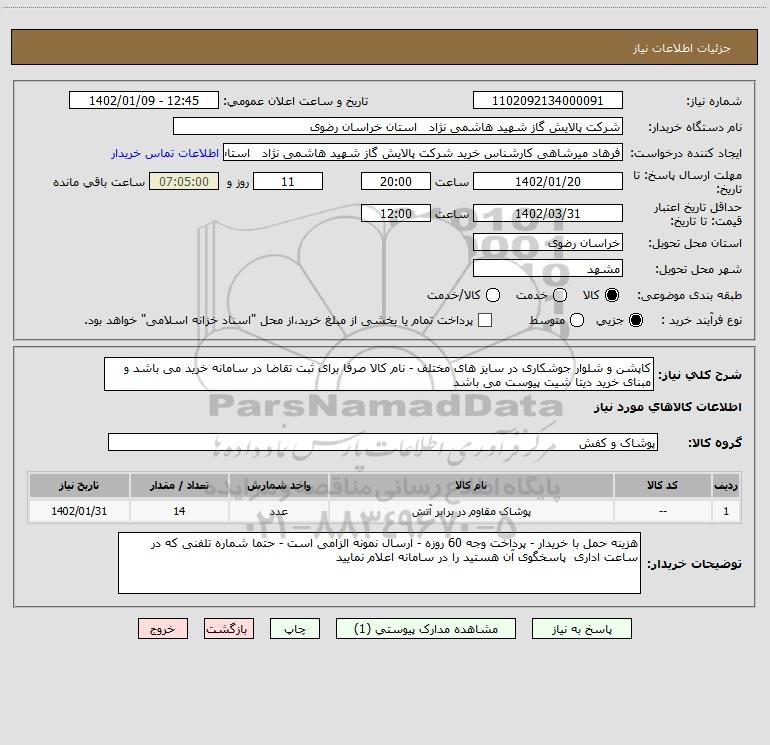 نام دستگاه خریدار:شرکت پالایش گاز شهید هاشمی نژاد استان خراسان رضوی