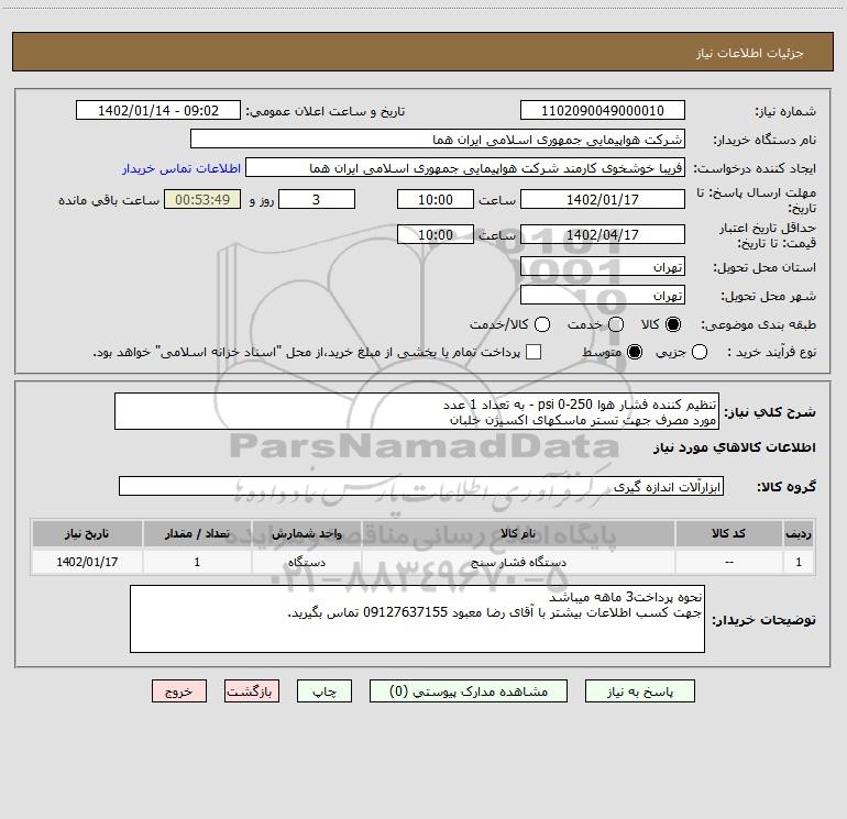 نام دستگاه خریدار:شرکت هواپیمایی جمهوری اسلامی ایران هما