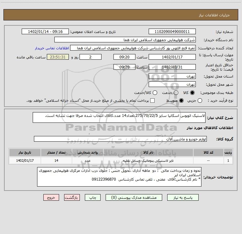 نام دستگاه خریدار:شرکت هواپیمایی جمهوری اسلامی ایران هما