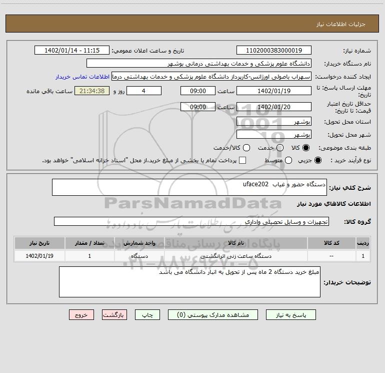 نام دستگاه خریدار:دانشگاه علوم پزشکی و خدمات بهداشتی درمانی بوشهر