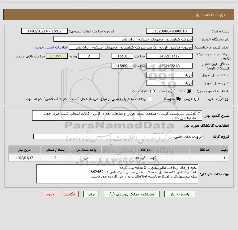نام دستگاه خریدار:شرکت هواپیمایی جمهوری اسلامی ایران هما