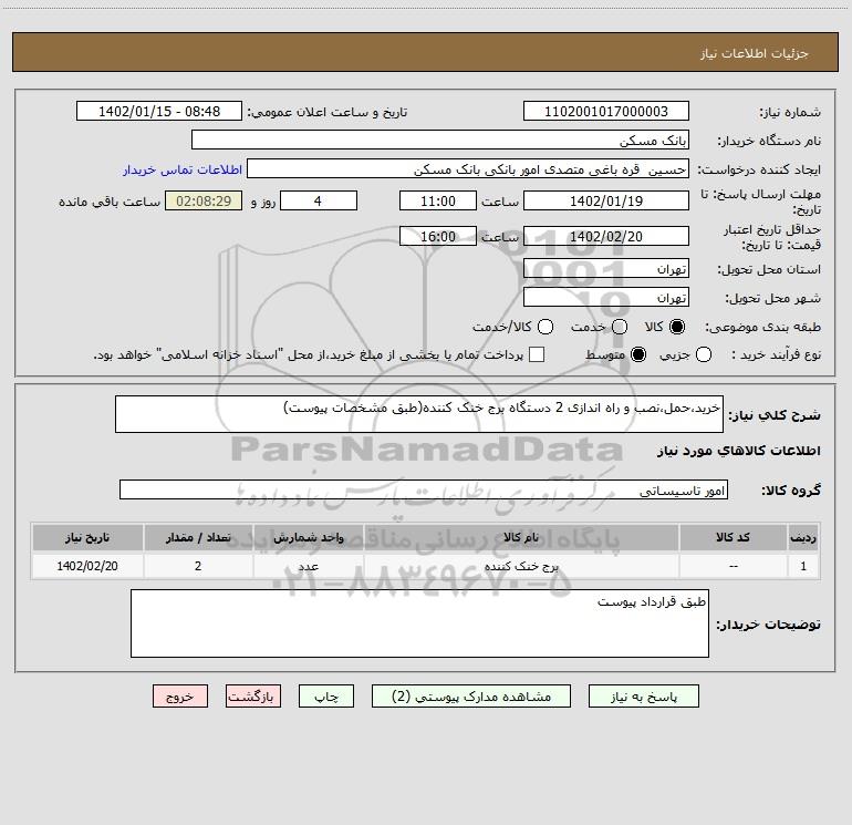 شرح کلی نیاز: خرید،حمل،نصب و راه اندازی 2 دستگاه برج خنک کننده(طبق مشخصات پیوست)