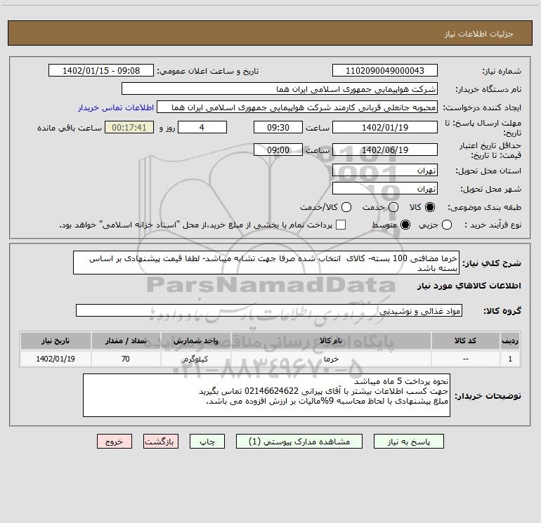 نام دستگاه خریدار:شرکت هواپیمایی جمهوری اسلامی ایران هما