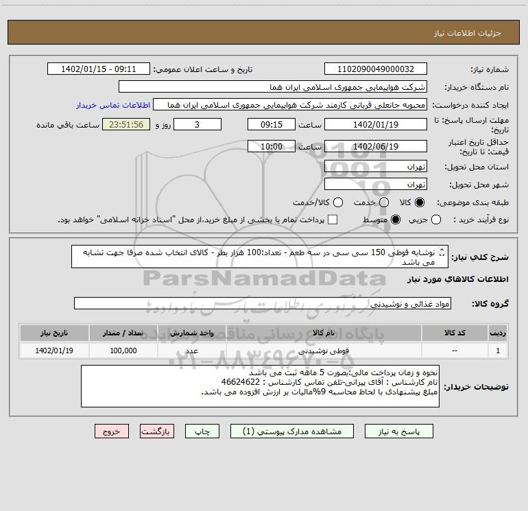 نام دستگاه خریدار:شرکت هواپیمایی جمهوری اسلامی ایران هما