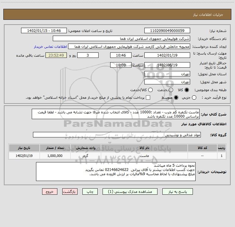 نام دستگاه خریدار:شرکت هواپیمایی جمهوری اسلامی ایران هما