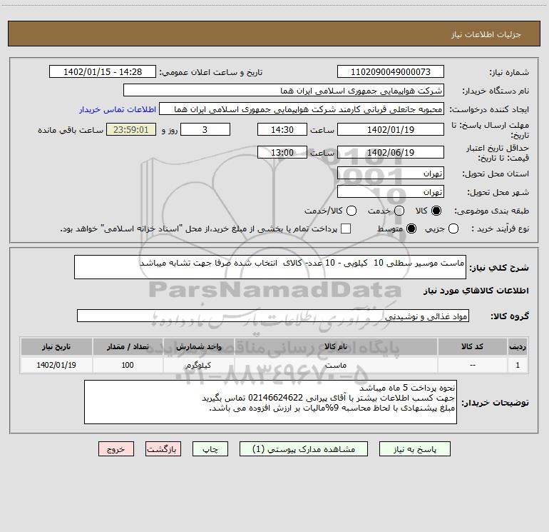 نام دستگاه خریدار:شرکت هواپیمایی جمهوری اسلامی ایران هما