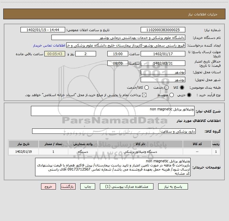 شرح کلی نیاز: ونتیلاتور پرتابل non magnetic