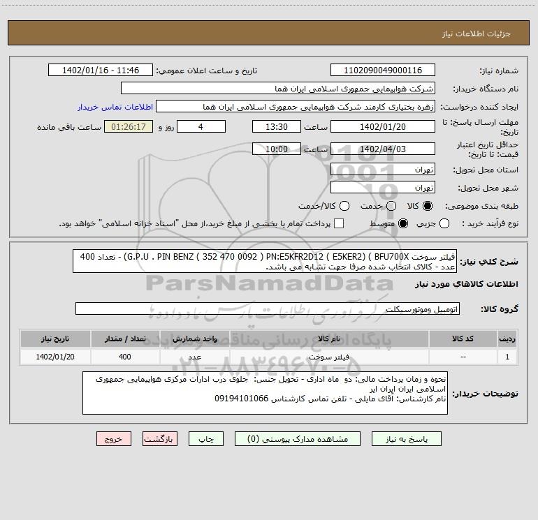 | 1 | -- | فیلتر سوخت | عدد | 400 | 1402/01/20 |