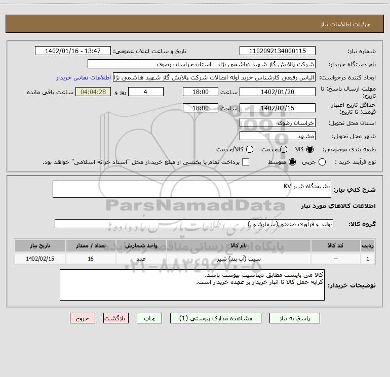 نام دستگاه خریدار:شرکت پالایش گاز شهید هاشمی نژاد استان خراسان رضوی