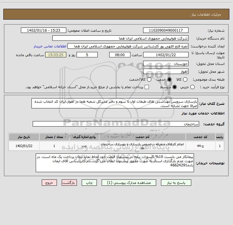 نام دستگاه خریدار:شرکت هواپیمایی جمهوری اسلامی ایران هما