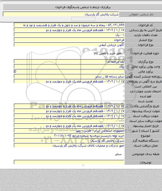 امور تدارکات و عملیات کالای شرگت پالایش گاز پارسیان
