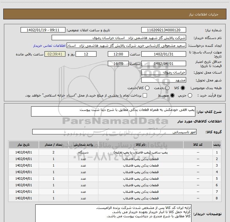 نام دستگاه خریدار:شرکت پالایش گاز شهید هاشمی نژاد استان خراسان رضوی