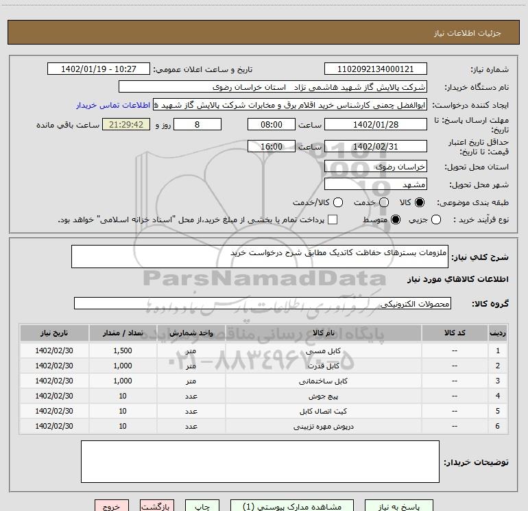 نام دستگاه خریدار:شرکت پالایش گاز شهید هاشمی نژاد استان خراسان رضوی