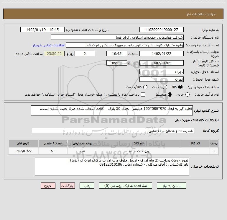 نام دستگاه خریدار:شرکت هواپیمایی جمهوری اسلامی ایران هما