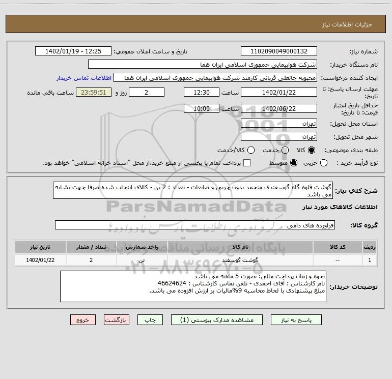 نام دستگاه خریدار:شرکت هواپیمایی جمهوری اسلامی ایران هما