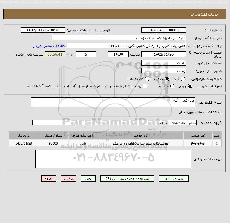 نام دستگاه خریدار:اداره کل دامپزشکی استان زنجان