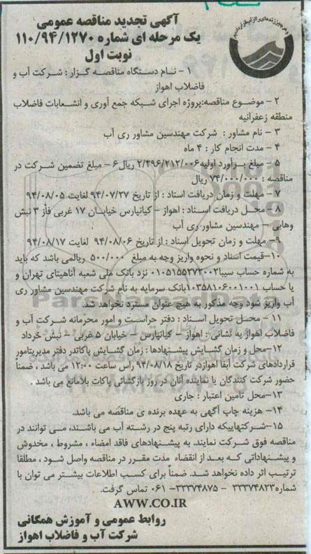 نام دستگاه مناقصه گزار: شرکت آب و فاضلاب اهواز