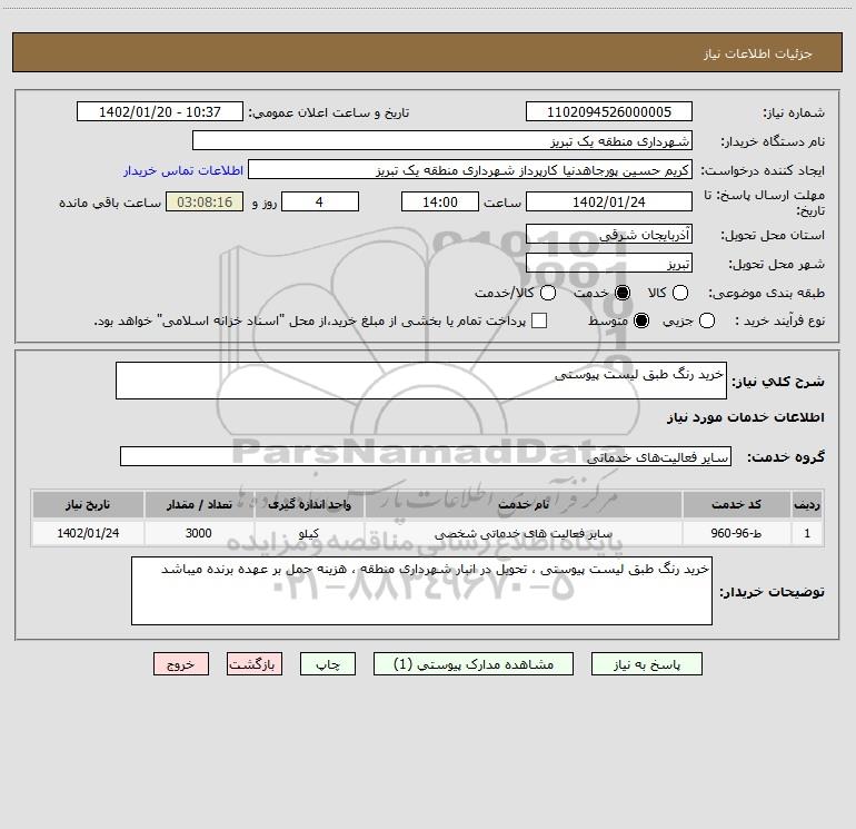 توضیحات خریدار:خرید رنگ طبق لیست پیوستی ، تحویل در انبار شهرداری منطقه ، هزینه حمل بر عهده برنده میباشد
