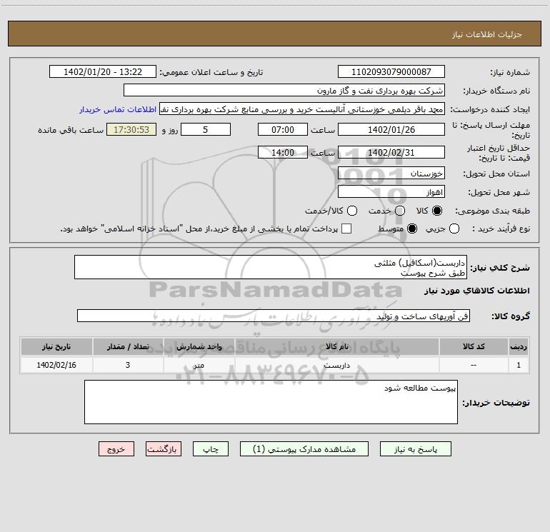 | 1 | -- | داربست | متر | 3 | 1402/02/16 |