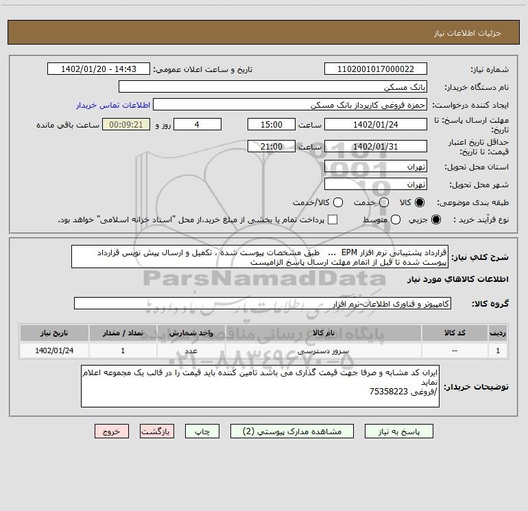 شرح کلی نیاز: قرارداد پشتیبانی نرم افزار EPM ... طبق مشخصات پیوست شده ، تکمیل و ارسال پیش نویس قرارداد پیوست شده تا قبل از اتمام مهلت ارسال پاسخ الزامیست