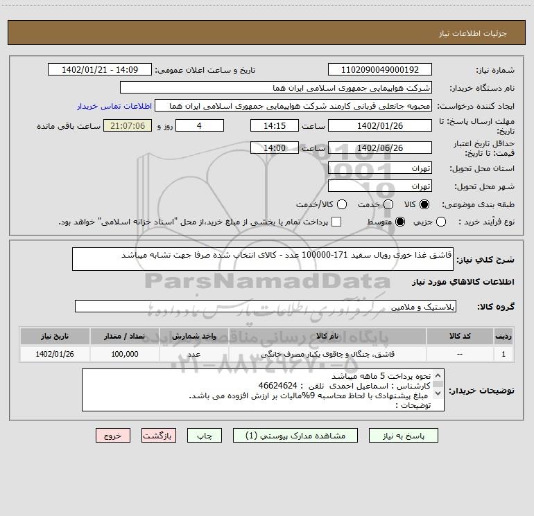 نام دستگاه خریدار:شرکت هواپیمایی جمهوری اسلامی ایران هما