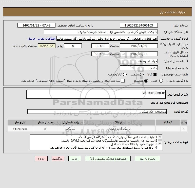نام دستگاه خریدار:شرکت پالایش گاز شهید هاشمی نژاد استان خراسان رضوی