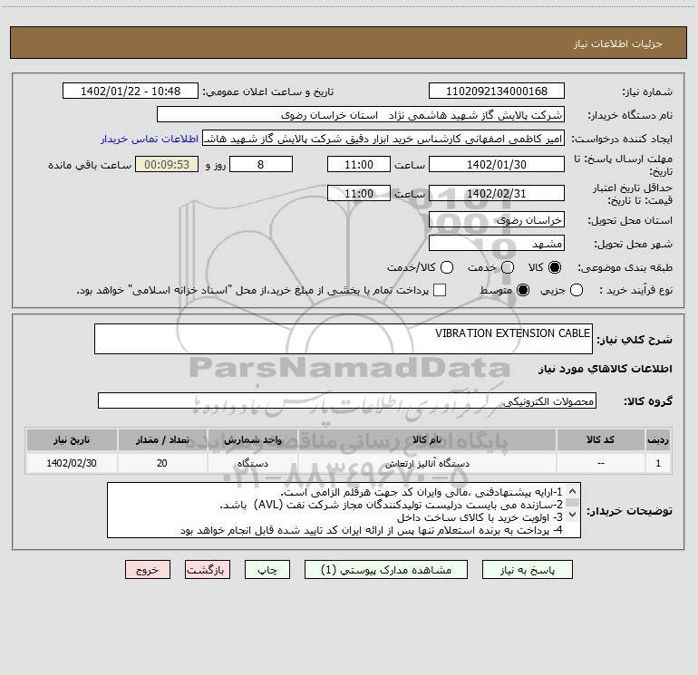 استعلام VIBRATION EXTENSION CABLE, استعلام VIBRATION EXTENSION CABLE
