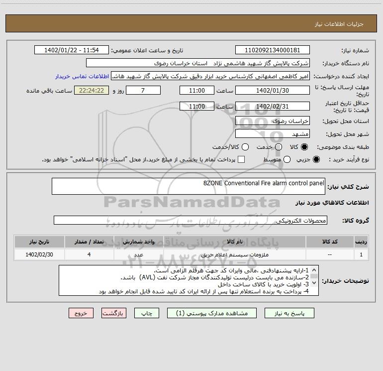 نام دستگاه خریدار:شرکت پالایش گاز شهید هاشمی نژاد استان خراسان رضوی