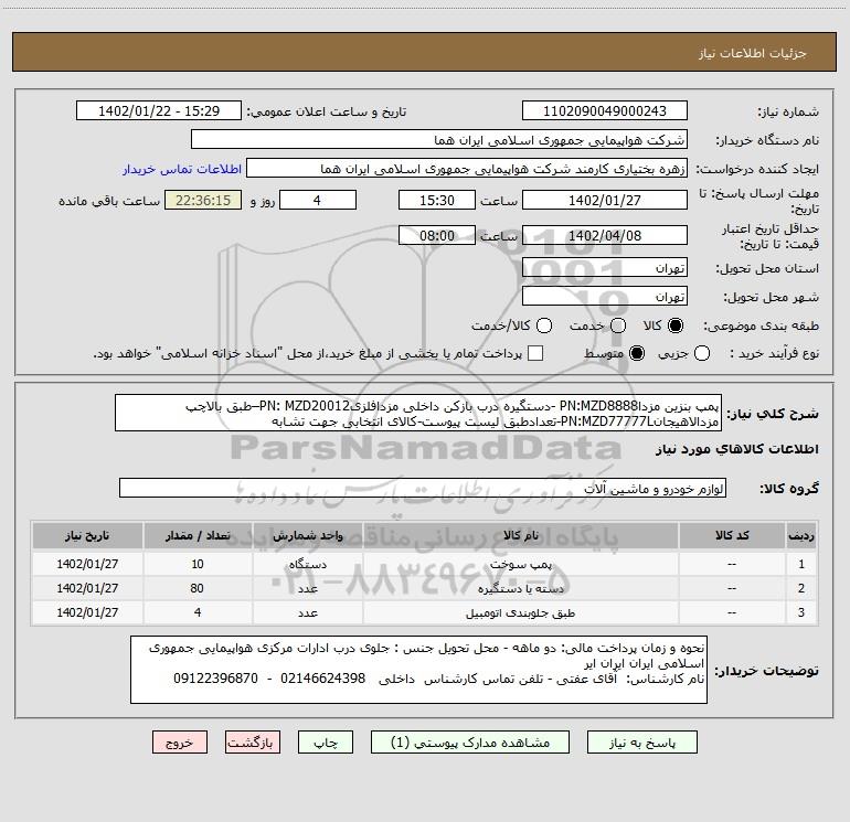 استعلام پمپ بنزین مزداPN:MZD8888 -دستگیره درب بازکن داخلی مزدافلزیPN: MZD20012–طبق بالاچپ مزدالاهیجانPN:MZD77777L-تعدادطبق لیست پیوست-کالای انتخابی جهت تشابه, استعلام پمپ بنزین مزداPN:MZD8888 -دستگیره درب بازکن داخلی مزدافلزیPN: MZD20012–طبق بالاچپ مزدالاهیجانPN:MZD77777L-تعدادطبق لیست پیوست-کالای انتخابی جهت تشابه