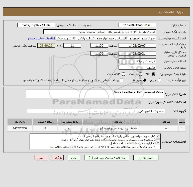 استعلام Valve Feedback AND Solenoid Valve, استعلام Valve Feedback AND Solenoid Valve