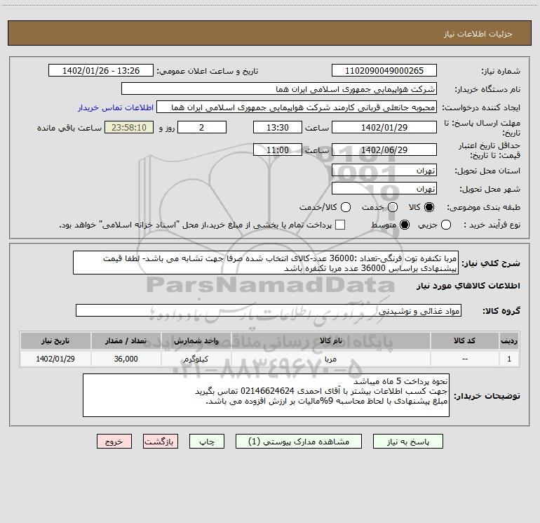| 1 | -- | مربا | کیلوگرم | 36,000 | 1402/01/29 |