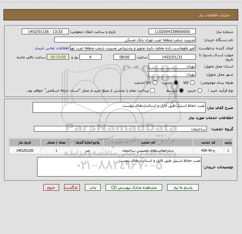 نام دستگاه خریدار:مدیریت شعب منطقه غرب تهران بانک مسکن