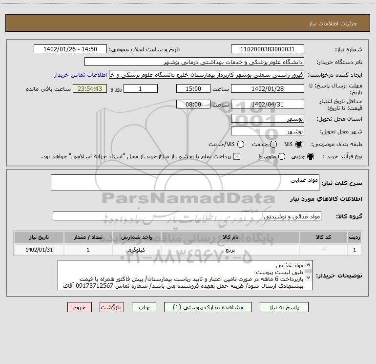 نام دستگاه خریدار:دانشگاه علوم پزشکی و خدمات بهداشتی درمانی بوشهر