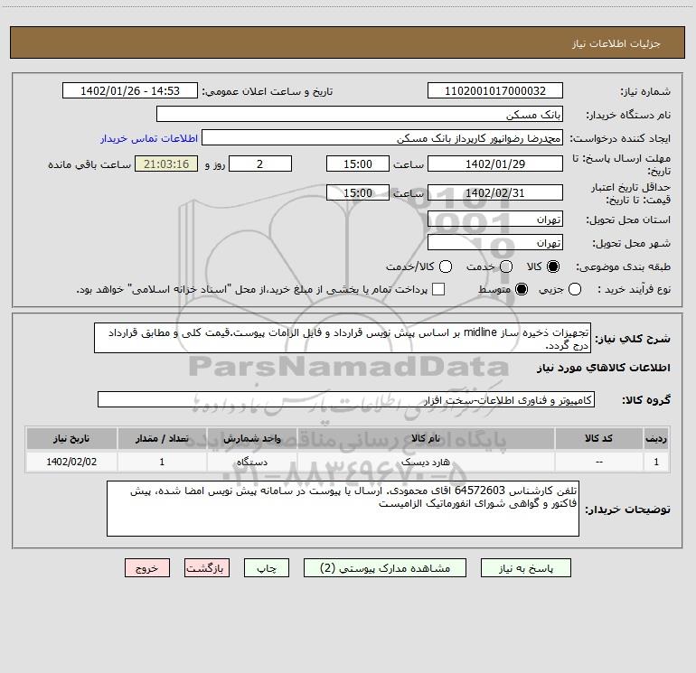 شرح کلی نیاز: تجهیزات ذخیره ساز midline بر اساس پیش نویس قرارداد و فایل الزامات پیوست.قیمت کلی و مطابق قرارداد درج گردد.