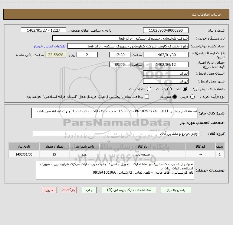 نام دستگاه خریدار:شرکت هواپیمایی جمهوری اسلامی ایران هما