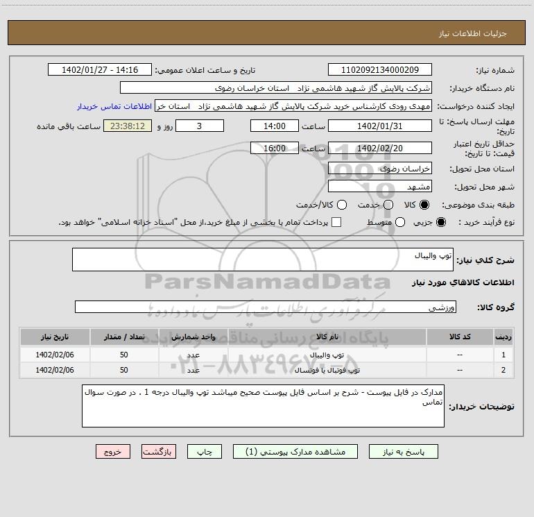 | 2 | -- | توپ فوتبال یا فوتسال | عدد | 50 | 1402/02/06 |