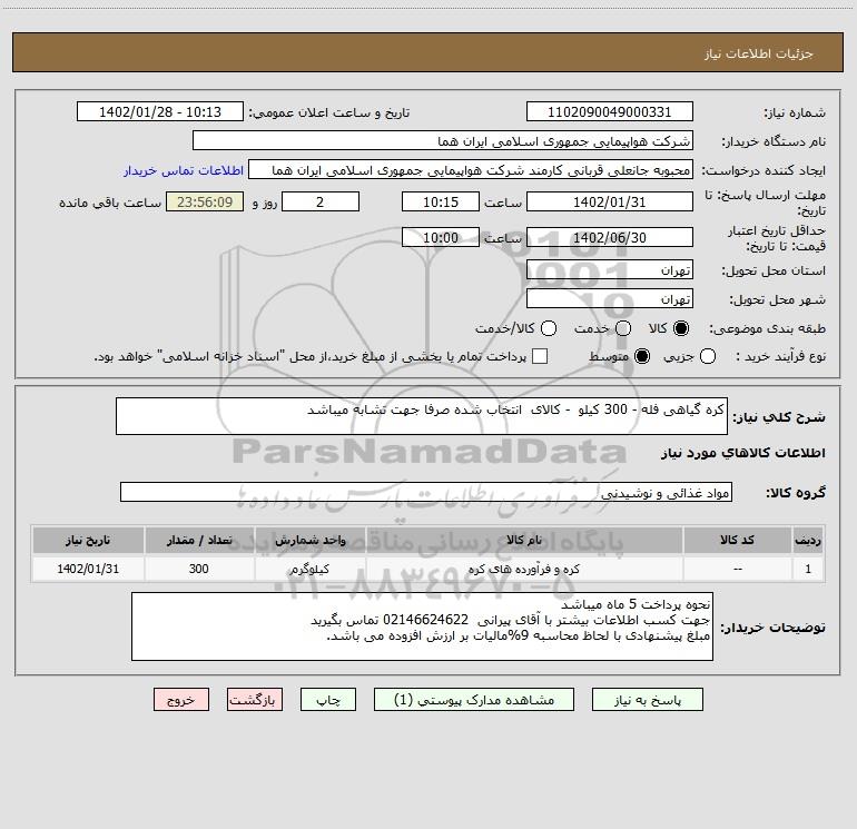 نام دستگاه خریدار:شرکت هواپیمایی جمهوری اسلامی ایران هما
